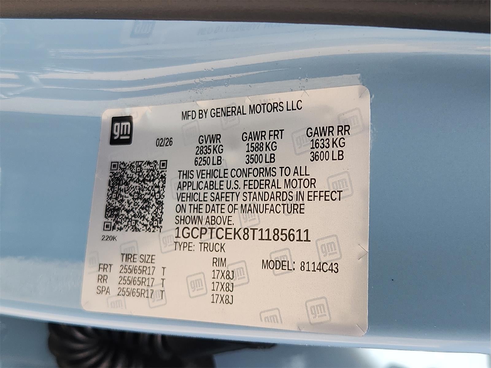 VIN: 1GCPTCEK8T1185611