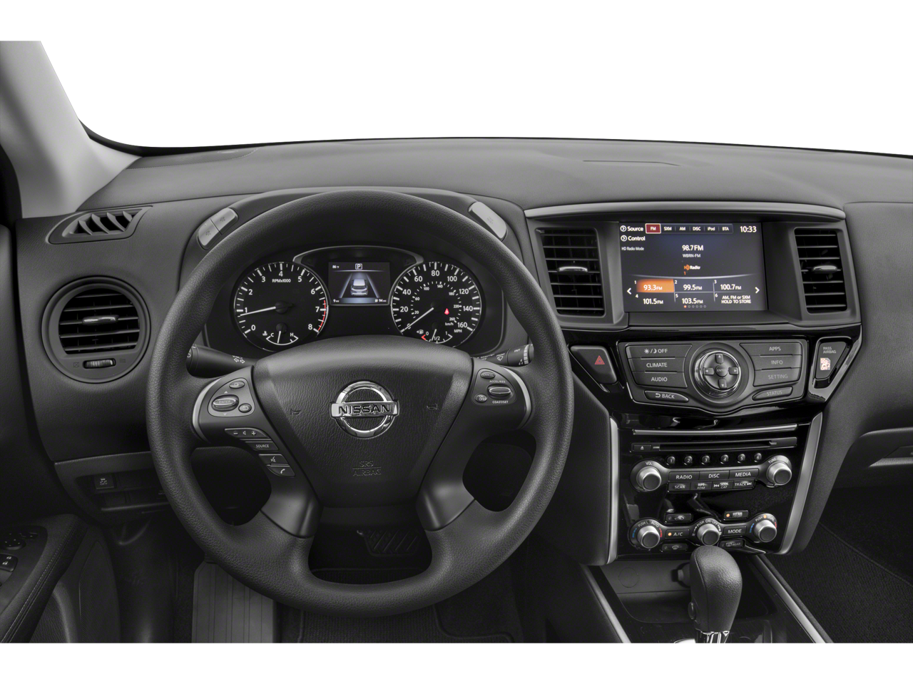 - Radio: AM/FM/CD Audio System w/NissanConnect -inc: 6 speakers, 8" color display w/multi-touch control, HD Radio, SiriusXM satellite radio, USB connection ports (2 type A) for iPod interface and other compatible devices, SiriusXM Travel Link (weather, fuel prices, movie listings, stock info and sports), Bluetooth hands-free phone system and streaming audio via Bluetooth