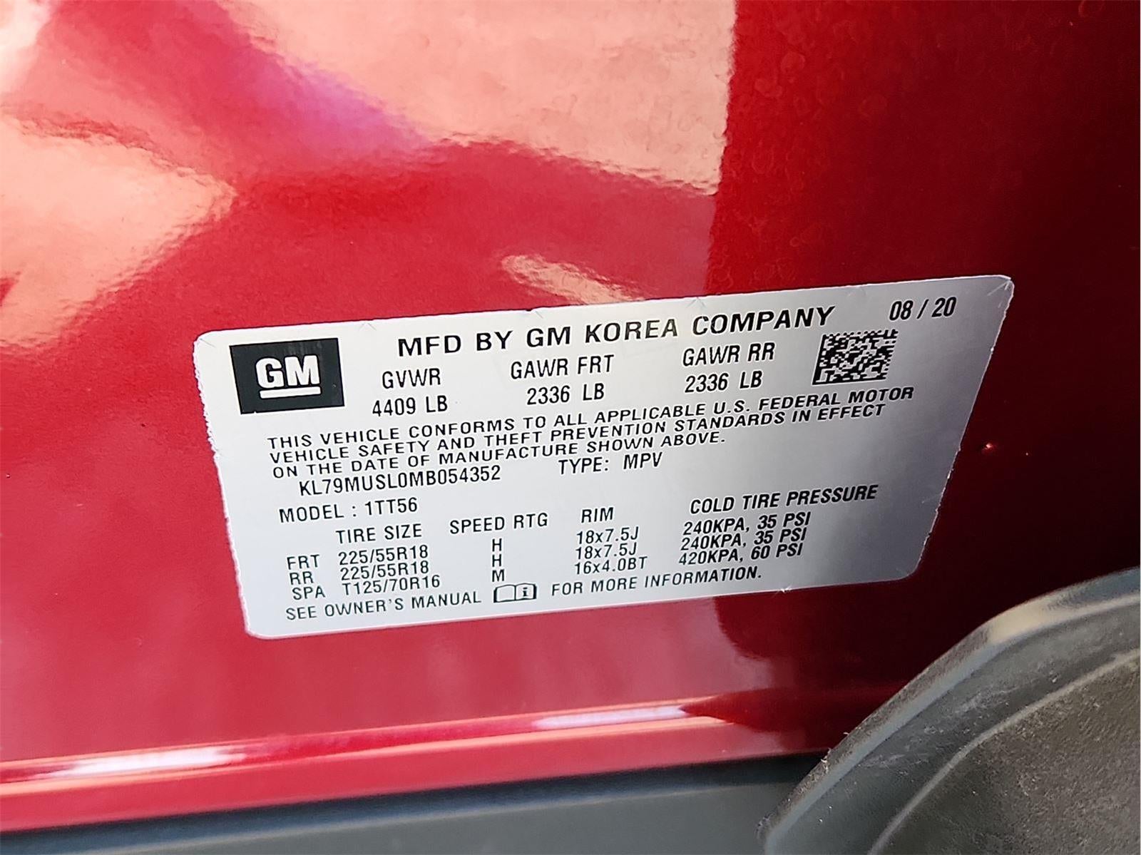 EMISSIONS, CONNECTICUT, DELAWARE, MAINE, MARYLAND, MASSACHUSETTS, NEW JERSEY, NEW YORK, OREGON, PENNSYLVANIA, RHODE ISLAND, VERMONT AND WASHINGTON STATE REQUIREMENTS, ENGINE, ECOTEC 1.3L I3 TURBO DOHC SIDI WITH VARIABLE VALVE TIMING (VVT), TRANSMISSION, 9-SPEED AUTOMATIC, AXLE, 3.17 FINAL DRIVE RATIO, SCARLET RED METALLIC, MOSAIC BLACK METALLIC TWO-TONE ROOF, SEATS, FRONT BUCKET, JET BLACK WITH RED ACCENTS, CLOTH WITH LEATHERETTE SEAT TRIM, AUDIO SYSTEM, CHEVROLET INFOTAINMENT 3 PLUS SYSTEM, TECHNOLOGY PACKAGE, CONVENIENCE PACKAGE, DRIVER CONFIDENCE PACKAGE, HEADLAMPS, LED, LICENSE PLATE BRACKET, FRONT, AUDIO SYSTEM FEATURE, BOSE PREMIUM 7-SPEAKER SYSTEM, HD RADIO, AUDIO SYSTEM FEATURE, MEMORY CARD RECEPTACLE, SIRIUSXM RADIO, POWER OUTLET, 120-VOLT, USB CHARGING-ONLY PORTS, WIRELESS CHARGING, DRIVER INFORMATION CENTER, ENHANCED, 4.2"" DIAGONAL MULTI-COLOR DISPLAY, ADAPTIVE CRUISE CONTROL, AIR CONDITIONING, SINGLE-ZONE AUTOMATIC CLIMATE CONTROL, SENSOR, CABIN HUMIDITY, MIRROR, INSIDE REARVIEW AUTO-DIMMING, VISORS, DRIVER AND FRONT PASSENGER ILLUMINATED VANITY MIRRORS, COVERED, SLIDING, HD REAR VISION CAMERA, REAR PARK ASSIST, REAR CROSS TRAFFIC ALERT, LANE CHANGE ALERT WITH SIDE BLIND ZONE ALERT